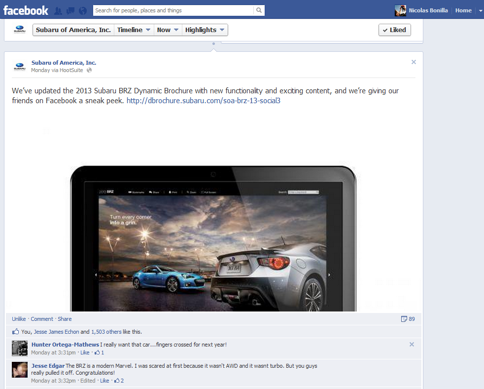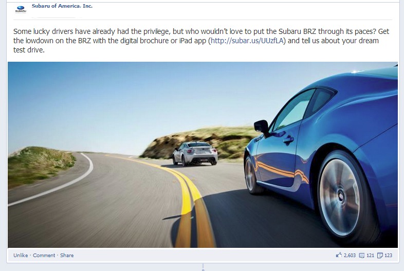 We gave these fans the chance to be among the first to test drive the BRZ, capturing the action on the road and their reaction in the moment. The video and the campaign immediately generated a lot of buzz in the sportscar enthusiast community, helping the BRZ become one of the hottest selling and most talked about vehicles of the year.