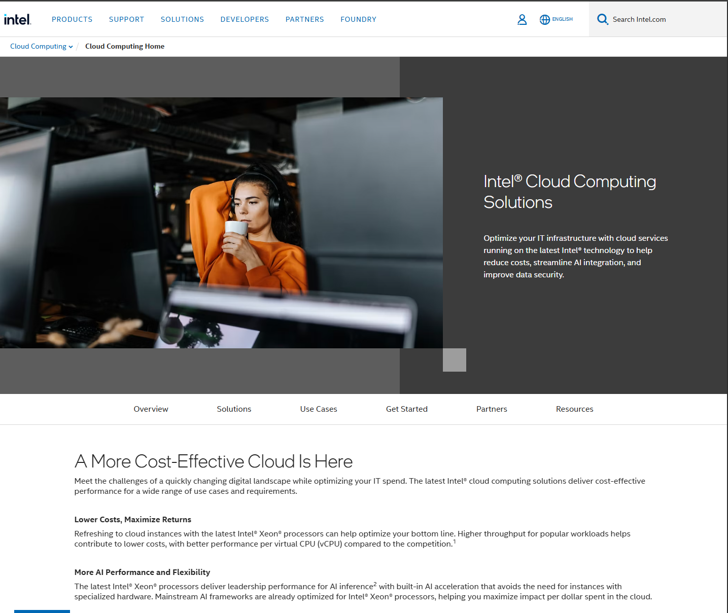 Our research showed that users were arriving to Intel's site and getting lost or hitting dead ends. A key part of our highly successful engagement strategy was to link products and solutions along different lines of interest. Hub pages, such as this cloud solutions page that I wrote, keep users engaged by connecting the content related to their interest.